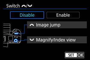 Galite sukeisti šiems ratukams priskirtas funkcijas vietomis, kaip kad naudojama vaizdų peržiūros ekrane.