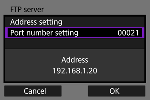 - Pasirinkite [Root folder/Šakninis aplankas], kad vaizdai būtų įrašomi į šakninį aplanką, kaip nurodyta FTP serverio nuostatose ().