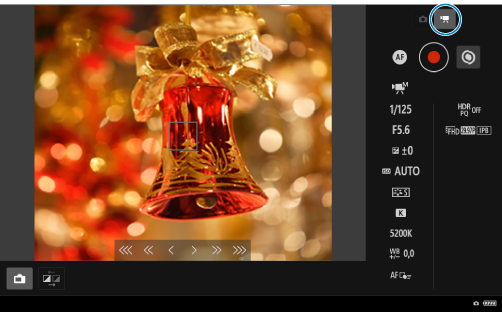 - Kad „Live View“ vaizdo rodinys reaguotų greičiau, pasirinkite (30) „Live View“ vaizdo kokybės perjungiklį, kuris sumažins „Live View“ vaizdo kokybę, kad pagreitintų reagavimą. Pasirinkite jį dar kartą, kad atkurtumėte originalią vaizdo kokybę.