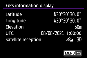 Iš GPS signalų gautą laiko informaciją galima nustatyti fotoaparate. Paklaida yra apie ±0,02 sek. Pasirinkus nuostatą [Auto update/Automatinis naujinimas], laikas atnaujinamas, kai įjungtas fotoaparatas ir gaunami GPS signalai.
