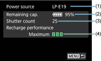 - (2) Baterijų lygio indikatorius () rodomas drauge su baterijų lygiu, nurodomu 1 % pokyčiu.
