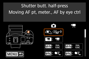 Galite perkelti AF taškus braukdami per išmanųjį valdiklį po to, kai paspausite mygtuką .
