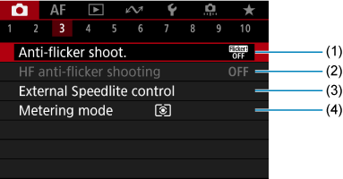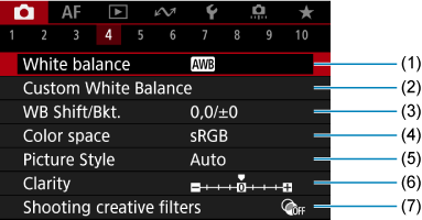 - (3) WB Shift/Bkt. (Baltos spalvos balanso poslinkis/skirtingų parametrų baltos spalvos balanso serija)