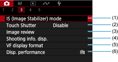 - (1) IS (Image Stabilizer) mode (IS (Vaizdo stabilizatoriaus) režimas)
