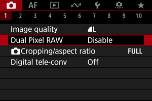 : Dual Pixel RAW] nuostata [Enable/Įjungti].