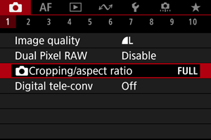 1. Pasirinkite [Fotografavimas: NuotraukosCropping/aspect ratio/Fotografavimas: NuotraukosApkirpimas / vaizdo proporcijos].