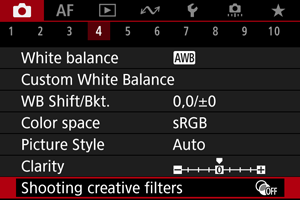 - Kai nustatytas kūrybinis filtras, fotoaparatas fotografuoja fotografavimo po vieną kadrą režimu neatsižvelgiant į pavaros režimo nuostatą (