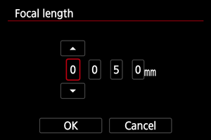 - Parinktis [Focal length/Židinio nuotolis] nerodoma, kai prijungti objektyvai, palaikantys ryšio su objektyvu funkciją.