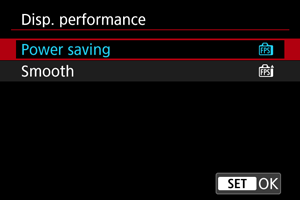 1. Pasirinkite [Fotografavimas: Disp. performance/Fotografavimas: Rodinio veikimas].