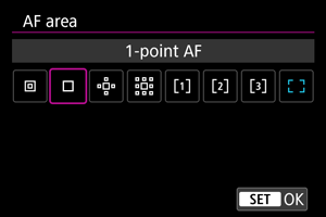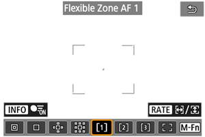 AF tašką galite nustatyti rankiniu būdu. Kai nustatyta laisvai pasirenkamos zonos AF 1, rodomi tokie ekranai kaip šie.
