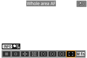 Galite paspausti mygtuką, priskirtą parinkčiai [Start/stop whole area AF tracking/Pradėti / stabdyti visos zonos AF sekimą] (skirtuke [: Customize buttons/