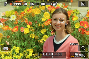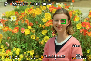 - Pasirinkus laisvai pasirenkamos zonos AF, rodomas zoninio AF rėmelis.