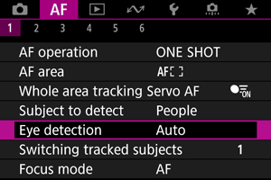 : Akių aptikimas] kurią nors kitą parinktį, ne [Disable/Išjungti] ().