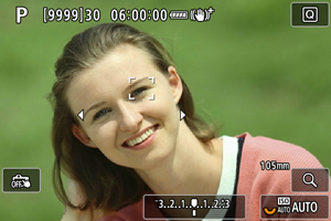 Nuspaudus užrakto mygtuką iki pusės, ant sufokusuotų AF taškų rodoma [].