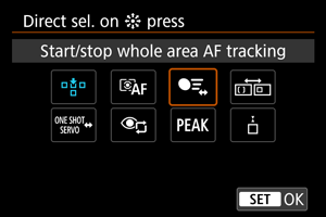 ], pasirinkite [Start/stop whole area AF tracking/Pradėti / stabdyti visos zonos AF sekimą].