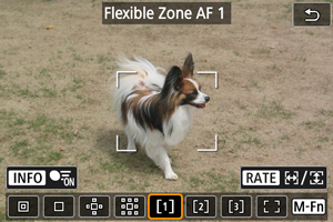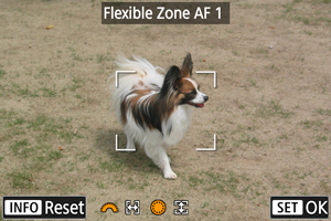 Galite pakeisti zoninio AF rėmelio, rodomo lankstaus zoninio AF 1–3, dydį.