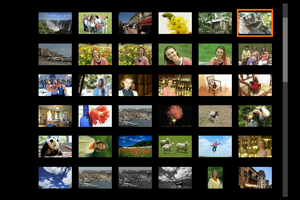 prieš laikrodžio rodyklę, 9 vaizdų rodinį pakeis 36 vaizdų ir 100 vaizdų rodiniai. Sukant ratuką pagal laikrodžio rodyklę, rodiniai ekrane keičiasi nuo 100, 36, 9, 4 iki vieno vaizdo rodymo.
