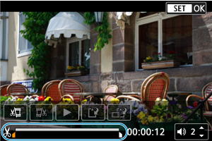 - Norėdami įrašyti suredaguotą filmą ir grįžti į filmo peržiūros ekraną, patvirtinimo lange pasirinkite parinktį [OK/Gerai].