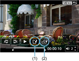 Pasirinkite [] (2), jei norite įrašyti suglaudintą failo versiją. Prieš suglaudinant 4K filmai konvertuojami į „Full HD“ filmus.