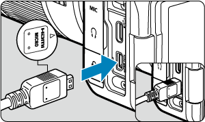 - HDMI kabelio kištukas įkiškite į fotoaparato lizdą