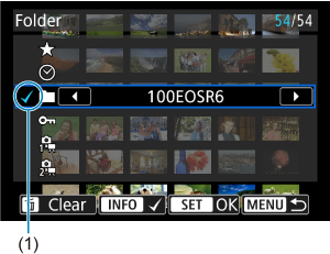 • Jei pasirinksite parinktį ir paspausite mygtuką INFO, varnelė [Varnelė] bus pašalinta (tai atšauks paieškos sąlygą).