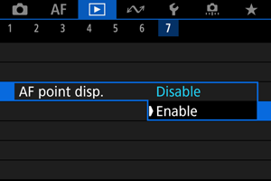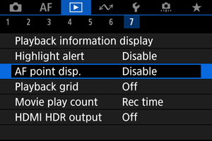 Gali būti rodomi AF taškai, kurie buvo naudoti fokusuotei pasiekti: jie peržiūros ekrane bus nurodomi raudona spalva.