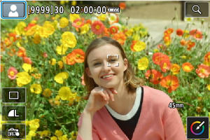 Esant tam tikroms fotografavimo sąlygoms, ant objekto gali atsirasti sekimo rėmelis (1).