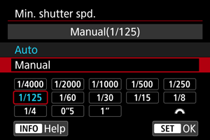 Pasirinkite parinktį [Min. shutter spd./Minimalus išlaikymas].
