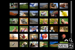 prieš laikrodžio rodyklę, 9 vaizdų rodinį pakeis 36 vaizdų ir 100 vaizdų rodiniai. Sukant ratuką pagal laikrodžio rodyklę, rodiniai ekrane keičiasi nuo 100, 36, 9, 4 iki vieno vaizdo rodymo.