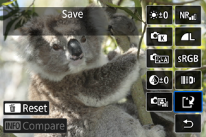 - Norėdami sugrąžinti fotografavimo metu galiojusias vaizdo nuostatas, paspauskite mygtuką