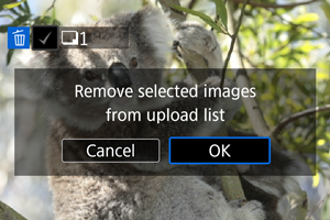Kai rodomas pranešimas apie vaizdų iš įkeliamo sąrašo pašalinimą, pasirinkite [OK/Gerai].