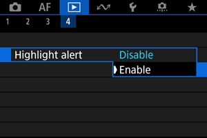 Galite nurodyti, kad peržiūros ekrane pereksponuotos vietos būtų nurodomos mirksėjimu. Siekdami didesnės gradacijos mirksinčiose srityse, kuriose gradacija turėtų būti tiksliai atkurta, nustatykite neigiamą ekspozicijos kompensavimo dydį ir nufotografuokite dar kartą, kad pasiektumėte geresnį rezultatą.