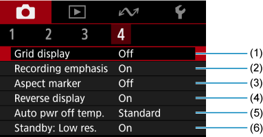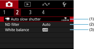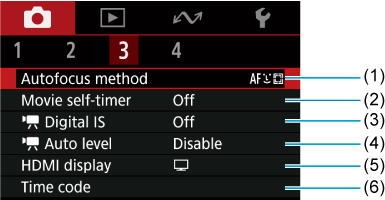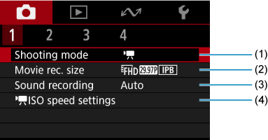 Tab Menus: Movie Recording