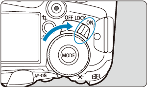 Fotoaparatas įsijungia. Įsijungia daugiafunkcinis užraktas ().