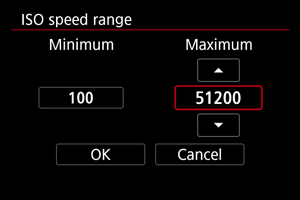 Pasirinkite parinktį [ISO speed range/ISO jautrumo diapazonas].