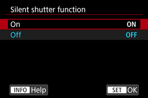 Išjungia užrakto suveikimo garsus, veikiant fotoaparatui skleidžiamus garsus ir blykstės bei kitų šviesos šaltinių žybsėjimą ir skleidžiamą šviesą.