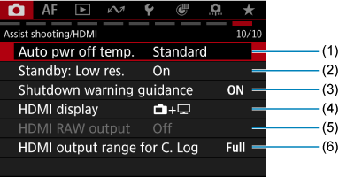 - (6) HDMI output range for C. Log (HDMI išvesties diapazonas, skirtas „C.Log“)