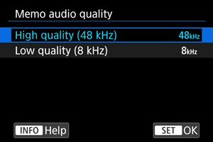 Suteikia galimybę įrašyti mažesnio dydžio balso atmintinių failus nei pasirinkus [High quality (48 kHz)/Aukšta kokybė (48 kHz)].