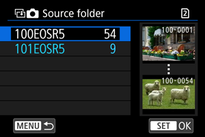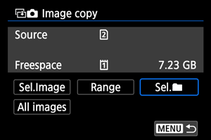 - Naudojantis nuostata [Sel.Image/Pasirinkti vaizdą], vienu metu negalima nukopijuoti keliuose aplankuose esančių vaizdų. Pasirinkite vaizdus vienu metu kopijuoti iš vieno aplanko.