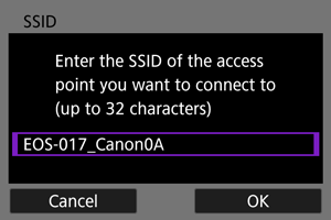 - Ir kitame įrenginyje, ir fotoaparate reikia nustatyti tą patį saugos tipą. Jei reikia išsamios informacijos apie autentifikavimo ir šifravimo tipus, žr. Autentifikavimo ir duomenų šifravimo metodai.