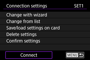 Pasirinkite parinktį [Connection settings/Sujungimo nuostatos].