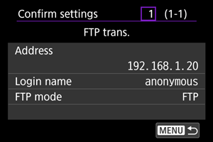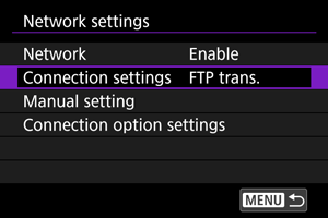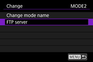 Galite įtraukti, keisti arba šalinti fotoaparate įrašytas ryšio arba funkcijų nuostatas. Taip pat galite sukonfigūruoti nuostatas, kurios nenustatytos naudojant ryšio užmezgimo vediklį, pvz., nuostatą, kuri nurodo, kas nutinka, kai failai tokiu pačiu pavadinimu kaip ir esami failai, nusiunčiami į FTP serverį.