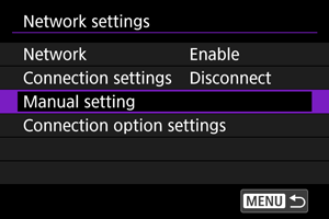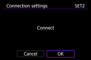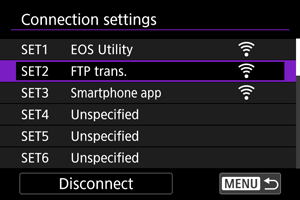 Pasirinkus [Select from list/Pasirinkti iš sąrašo], sąrašo pavidalu pateikiamos fotoaparate įrašytos ryšio nuostatos. Pasirinkite naudotinas ryšio nuostatas.