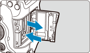 - Kai kortelės lizdo dangtelio užraktas pastumtas link atleidimo pusės, patraukite kortelės lizdo dangtelį link savęs, kad atidarytumėte.