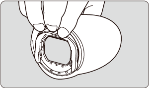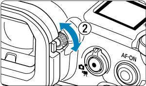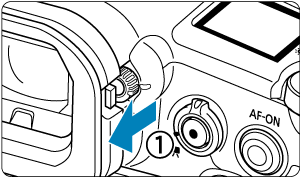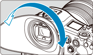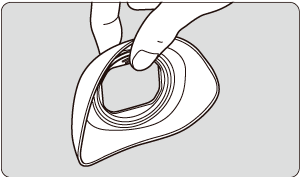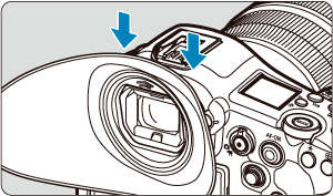 - Kai okuliaro gaubto ER-iE šoniniai grioveliai sulygiuoti su fotoaparatu, stumkite okuliaro gaubtą iki nebesistums.