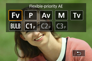 Suteikia galimybę automatiškai arba rankiniu būdu nustatyti išlaikymą, diafragmos reikšmę ir ISO jautrumą. Atitinka fotografavimą [P], [Tv], [Av] arba [M] režimu, todėl nereikia šių režimų įjungti.