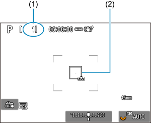 - Nukreipkite fotoaparatą į lygų baltos spalvos objektą, kad balta spalva užpildytų visą plotą, nurodytą (2).