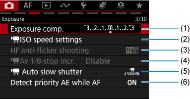 - (1) Exposure comp. (Ekspozicijos kompensavimas)