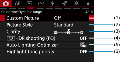 - (6) HDMI output range for C. Log (HDMI išvesties diapazonas, skirtas „C.Log“)