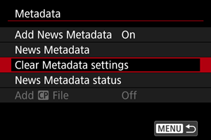 Pasirinkite parinktį [Clear Metadata settings/Išvalyti metaduomenų nuostatas].